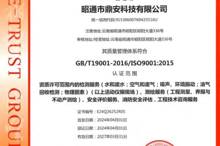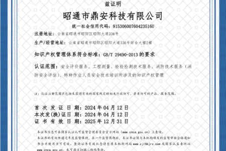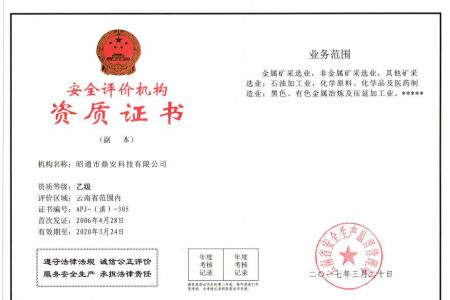2003年11月10日,昭通市鼎安科技有限公司成立,初始主要從事第三方安全工程技術(shù)服務(wù),經(jīng)多年運(yùn)營(yíng),發(fā)展為多專(zhuān)業(yè)綜合科技平臺(tái),為社會(huì)提供多種專(zhuān)業(yè)技術(shù)服務(wù)工作。 現(xiàn)公司注冊(cè)資金為1200萬(wàn)元,公司法定代表人:毛衛(wèi)旭。公司主要業(yè)務(wù):安全評(píng)價(jià)、安全標(biāo)準(zhǔn)化評(píng)審、安全工程技術(shù)服務(wù);環(huán)境監(jiān)測(cè)、職業(yè)衛(wèi)生檢測(cè)、檢驗(yàn);法律訴訟及非訴訟服務(wù);司法鑒定、固定資產(chǎn)投資項(xiàng)目節(jié)能服務(wù);工程咨詢;工程測(cè)量測(cè)繪;安全教育培訓(xùn)等。是安全生產(chǎn)服務(wù)、安全教育培訓(xùn)機(jī)構(gòu),也是環(huán)境監(jiān)測(cè)和職業(yè)衛(wèi)生服務(wù)機(jī)構(gòu),同時(shí)也是綜合的檢測(cè)檢驗(yàn)、綜合科技平臺(tái)服務(wù)機(jī)構(gòu)。多年來(lái)為公、檢、法、司、軍、警、海關(guān)、仲裁、安監(jiān)、工礦商貿(mào)企業(yè)、社會(huì)團(tuán)體及個(gè)人提供多專(zhuān)業(yè)技術(shù)服務(wù)。